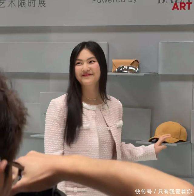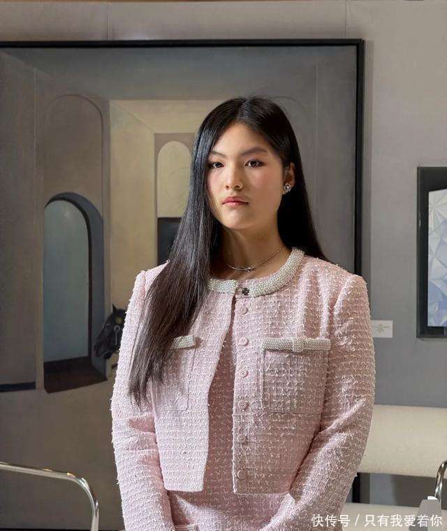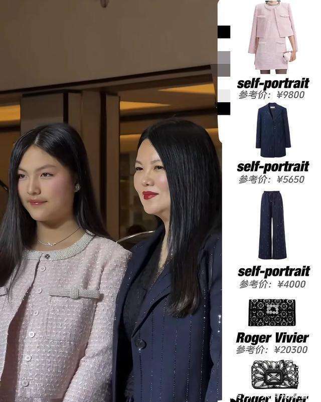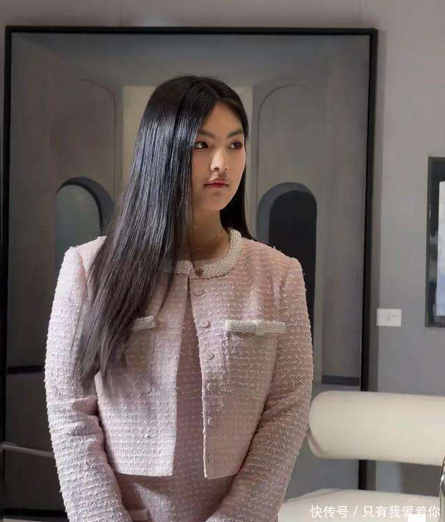 王诗龄穿着粉色的小香风套装,也和妈妈拎着同品牌家的包,她脖子上还戴了一条项链,打扮的像个小公主一样。